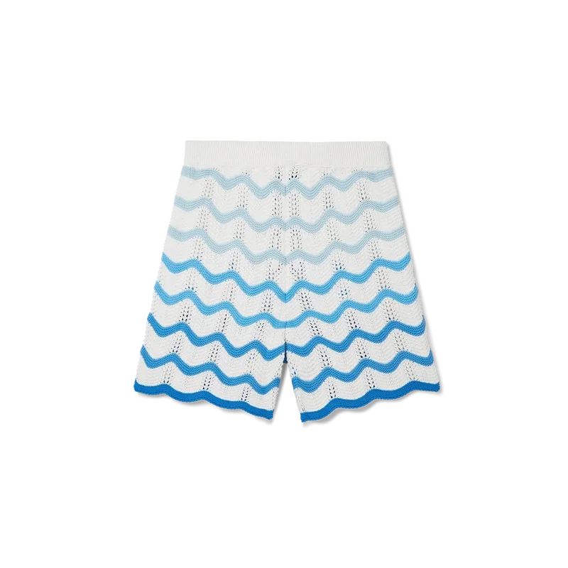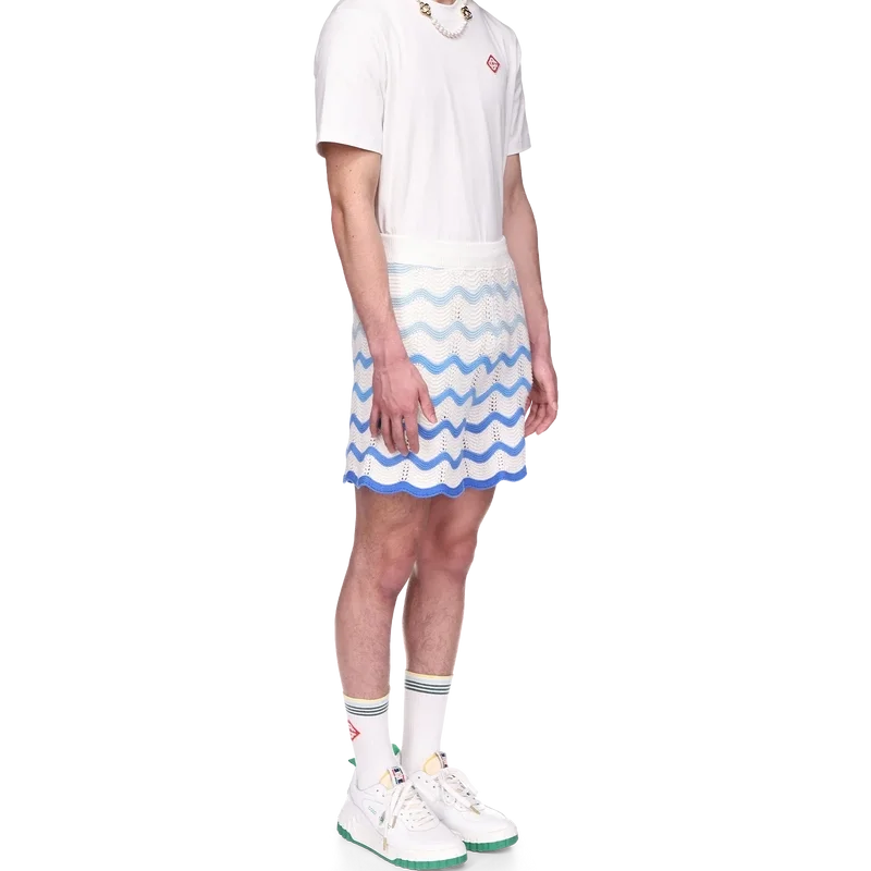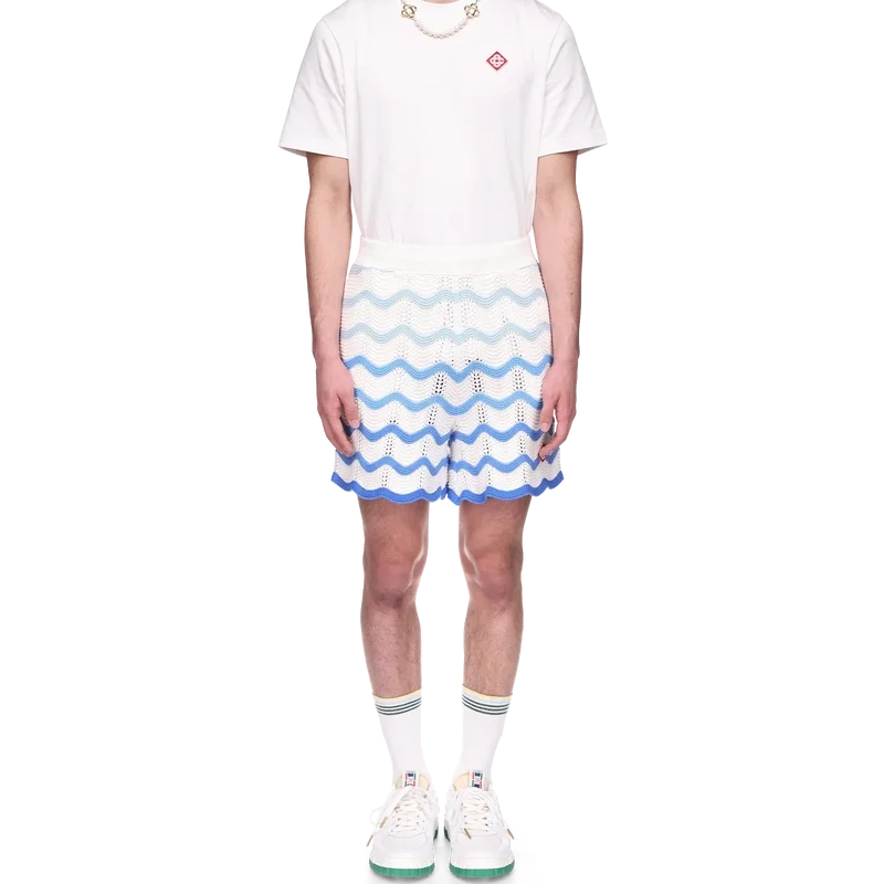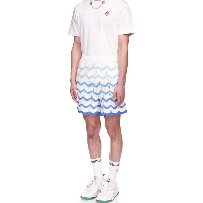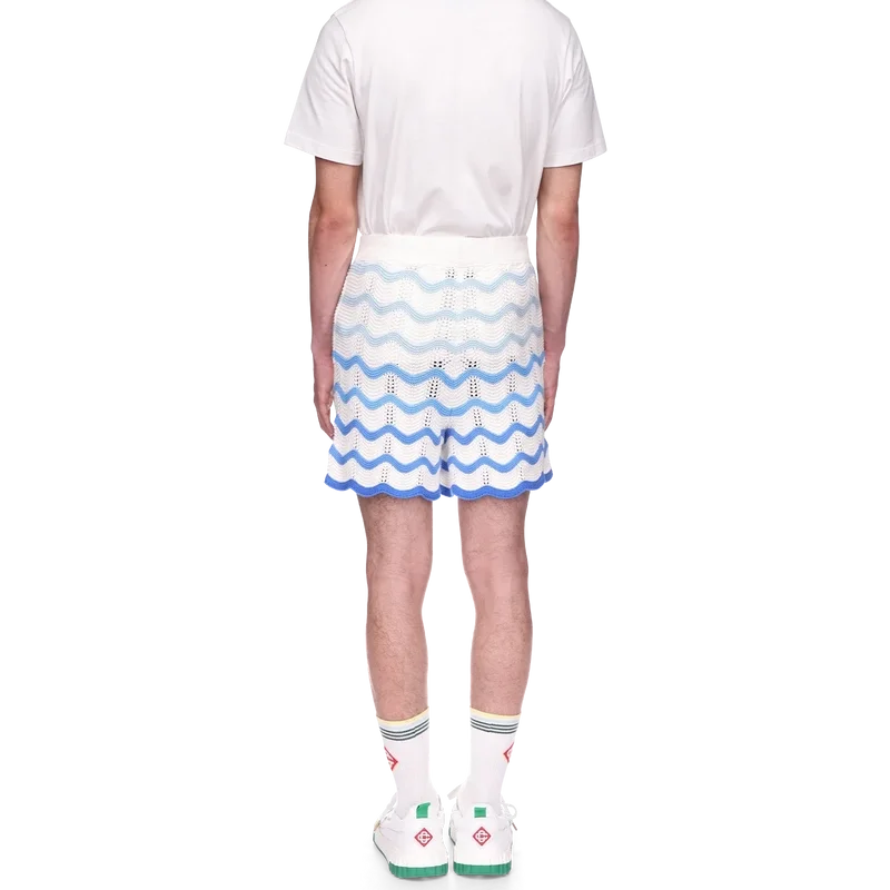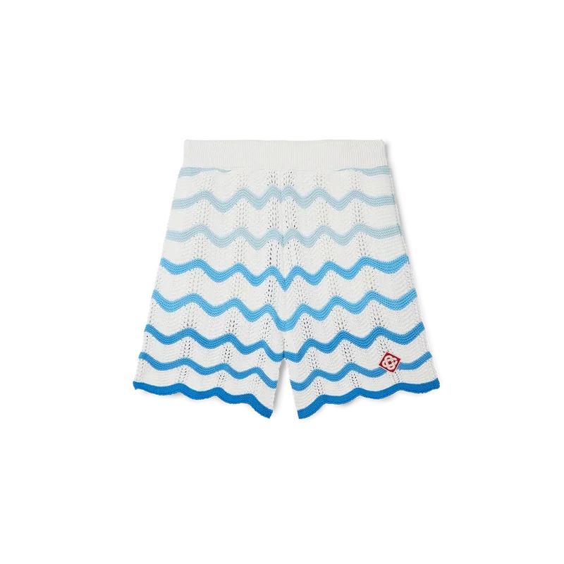 De Wavy Gradient Crochet Short is een kenmerkend Casablanca-model, vervaardigd uit een zacht, open geweven haakstof met textuur. Afgewerkt met een interne trekkoordsluiting, het diamantlogo van het huis en het Casablanca-merklabel.