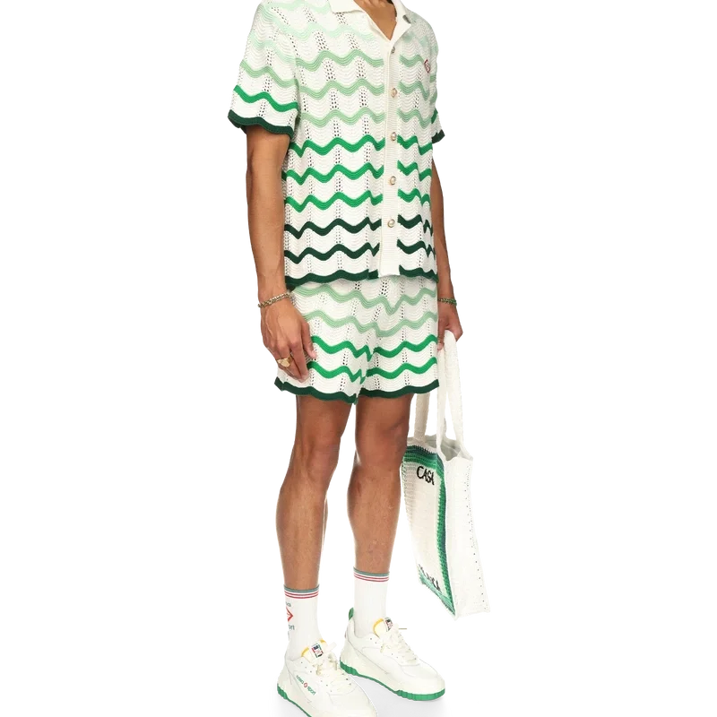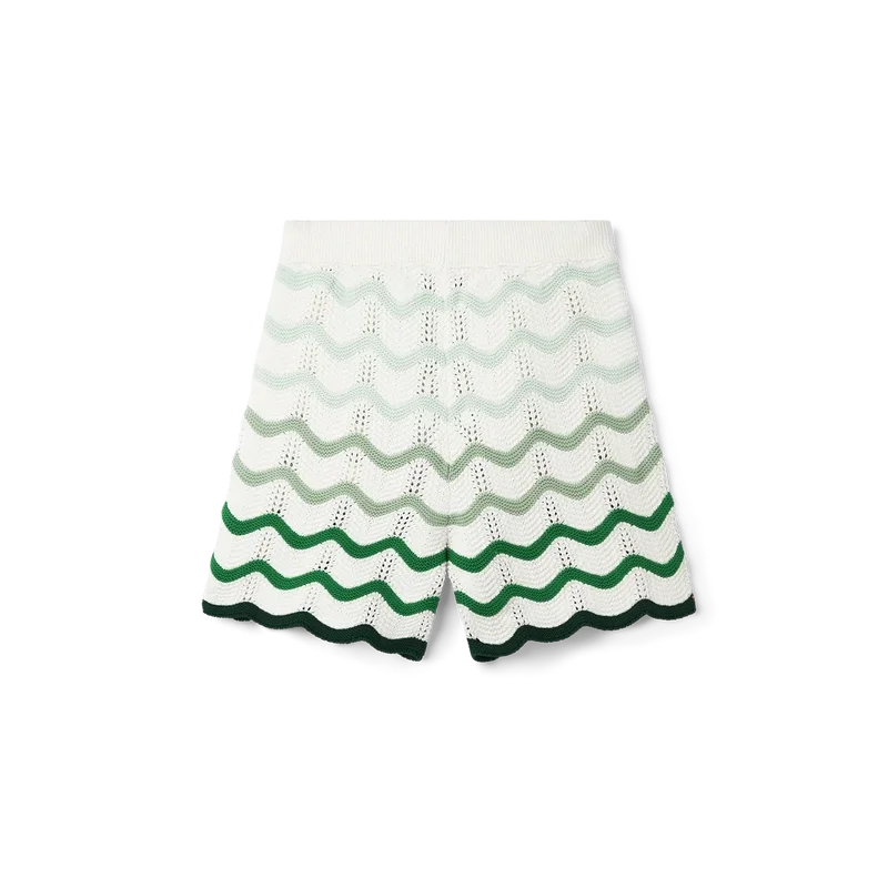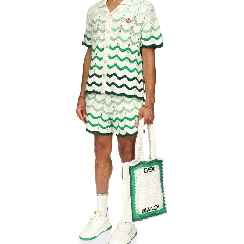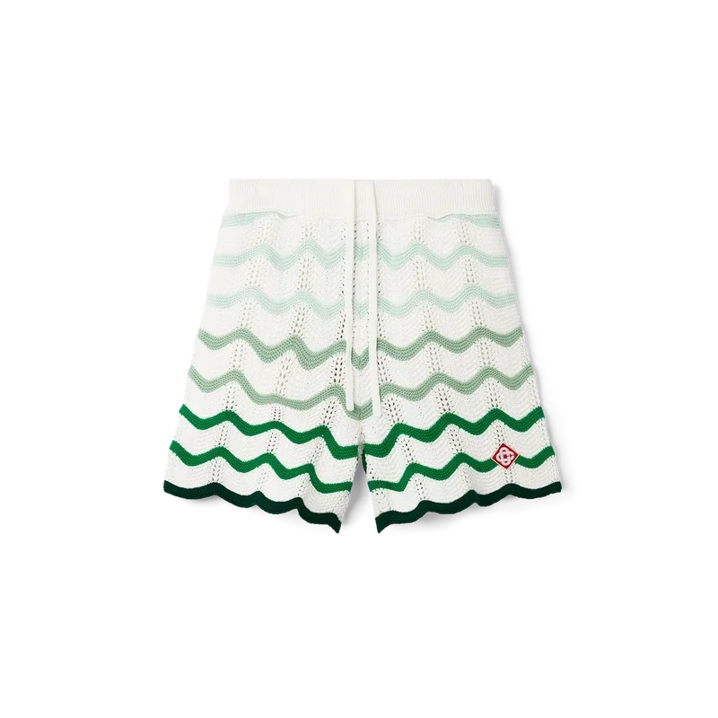 De Wavy Gradient Crochet Shorts zijn een kenmerkend Casablanca-model, vervaardigd uit een zacht, open geweven haakstof met textuur. Afgewerkt met een trekkoord aan de binnenkant, het diamantlogo van het huis en het Casablanca-merklabel.