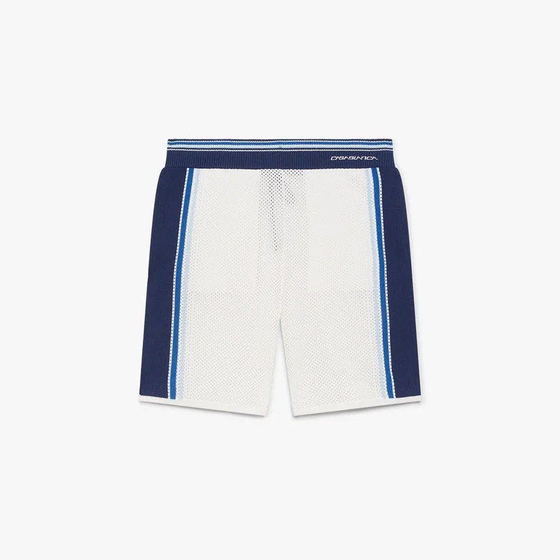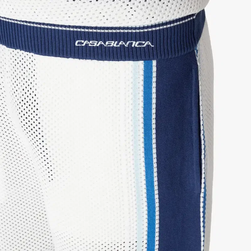 De gestreepte mesh trainingsshort heeft een verfijnd ontwerp met streepdetails aan de zijkanten. Afgewerkt met een elastische tailleband met gestreepte rand, trekkoordsluiting en zijzakken in de naad met ritssluiting.