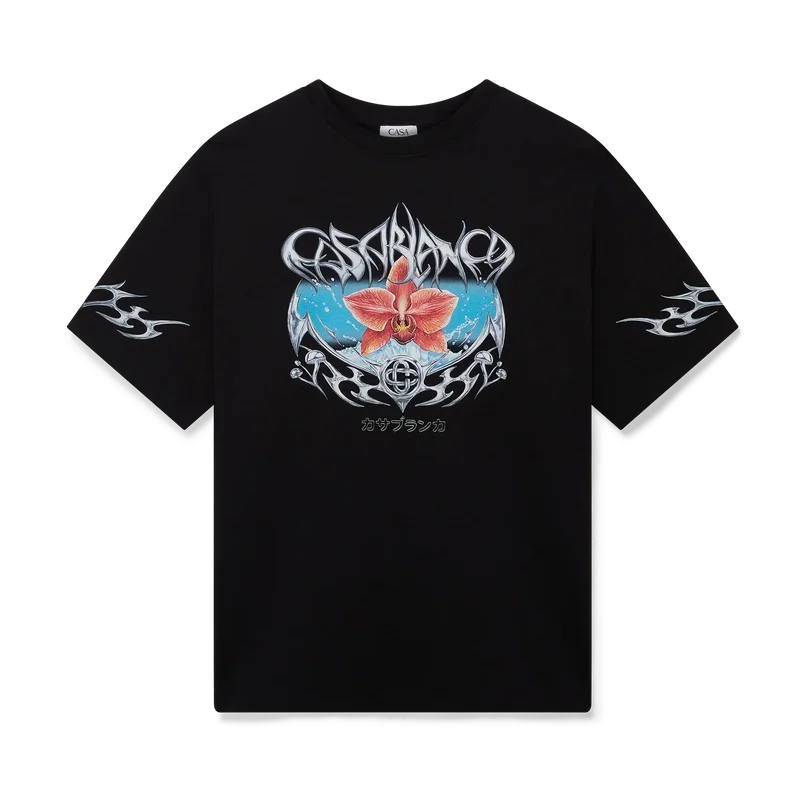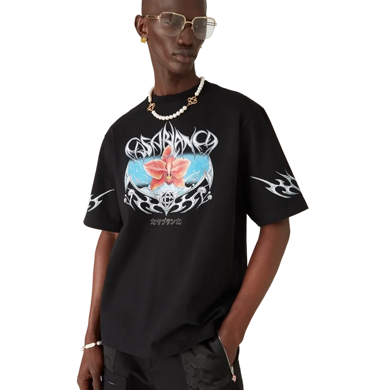 Het Blades Oversized T-shirt heeft een print met een ontwerp dat speelt met het contrast tussen twee tegengestelde gevoelens: de scherpte van het mes en het koude, zilveren chroom, in contrast met de warmte van de natuur, zoals de opvallende roze en rode tinten van een orchidee. De toevoeging van water geeft het ontwerp een fris, helder element. Afgewerkt met een klassieke ronde hals.