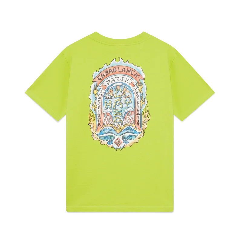 Het Casa Way Skate T-shirt is een bedrukt ontwerp met korte mouwen, gemaakt van biologisch katoen en voorzien van kenmerkende illustraties geïnspireerd op klassieke Californische skate-insignes uit de jaren 70 met een vervagend kader. Afgewerkt met een klassieke ronde hals.