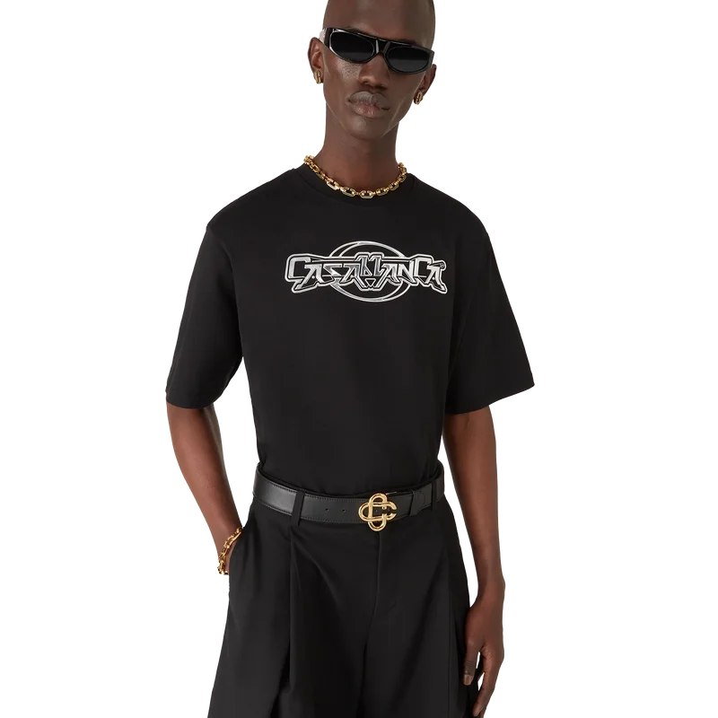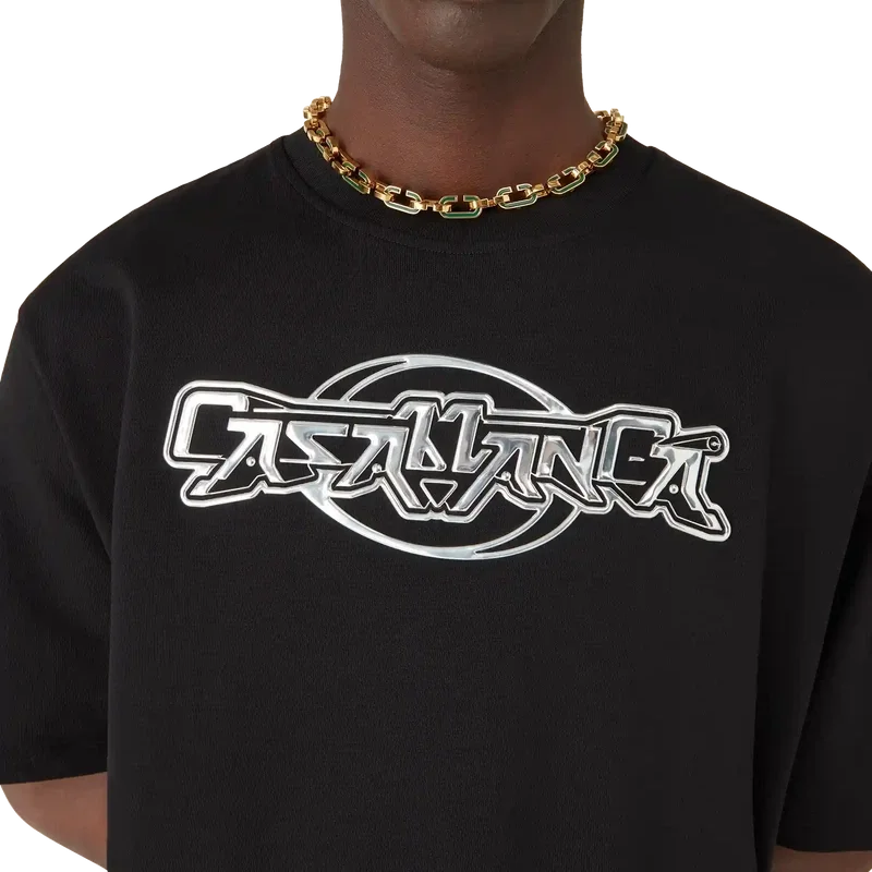 Het Casablanca Chrome oversized T-shirt is een ontwerp met korte mouwen, gemaakt van biologisch katoen en voorzien van het Chrome-tekstlogo van Casablanca. Afgewerkt met een klassieke ronde hals.
