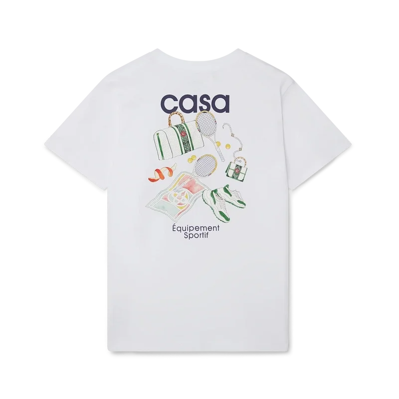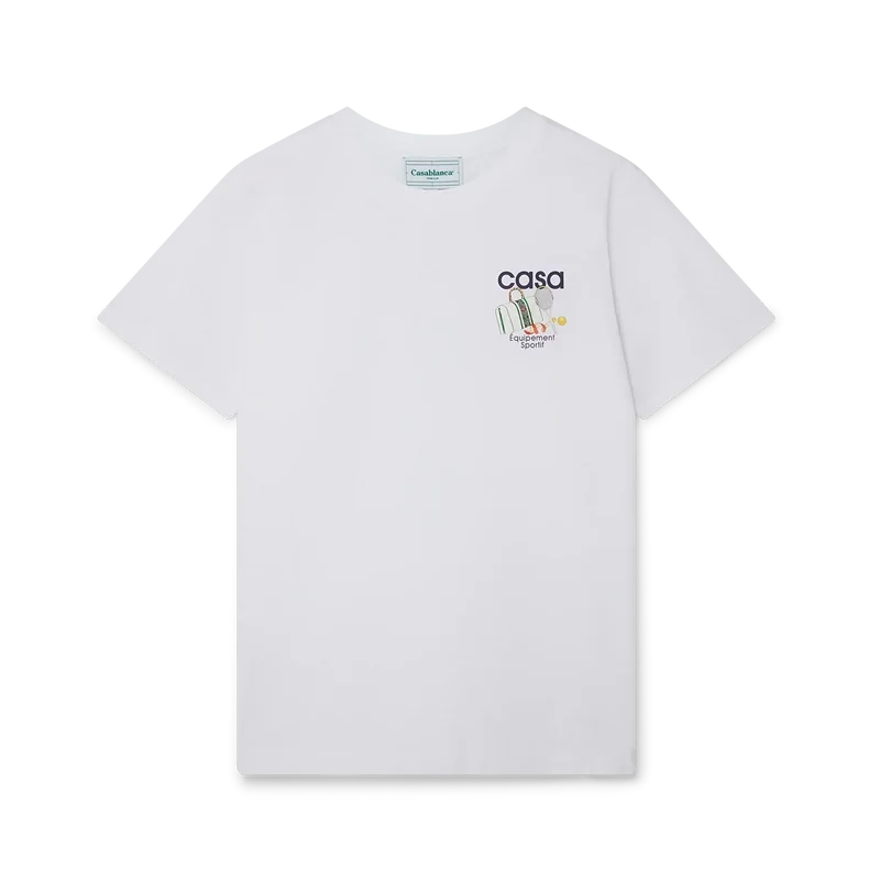 Het Equipement Sportif T-shirt is voorzien van een print van het kenmerkende kunstwerk van het huis, dat voor dit seizoen opnieuw is geïnterpreteerd, op de linkerborst en herhaald in een grotere print op de rug. Gemaakt van 100% biologisch katoen en afgewerkt met een klassieke ronde hals en een Casablanca-merklabel.