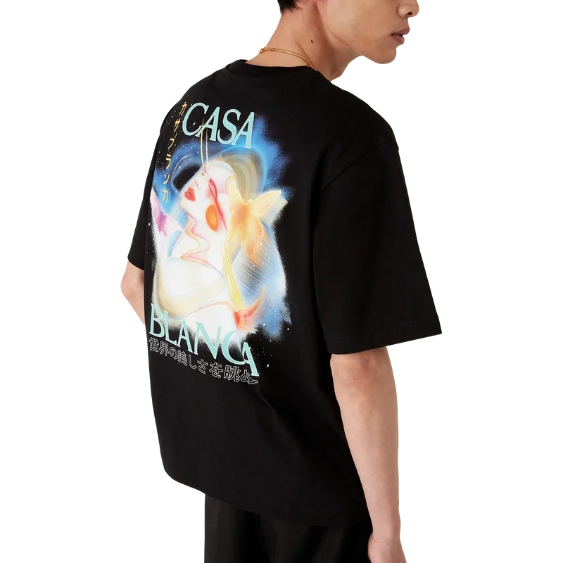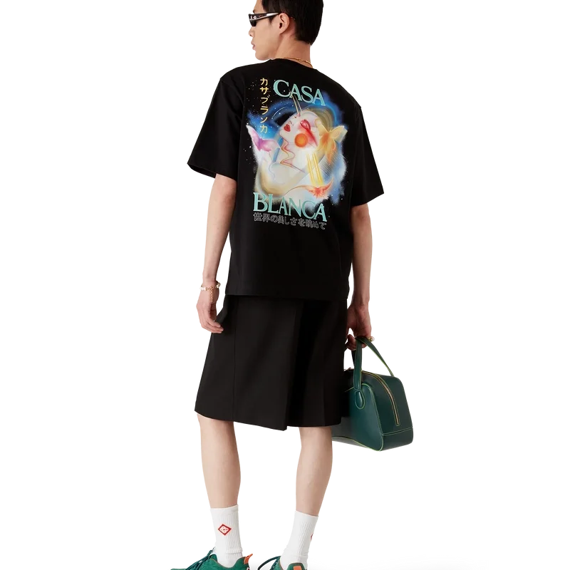 Het Galactic Connection T-shirt is een bedrukt ontwerp met korte mouwen, gemaakt van biologisch katoen, met de seizoensgebonden airbrush-illustratie van het huis – geïnspireerd door Pater Sato; met Galactic Connection verkennen we wie de bionische wezens van Casablanca zouden zijn, terwijl we de bergelementen op de achtergrond behouden. Afgewerkt met een klassieke ronde hals.