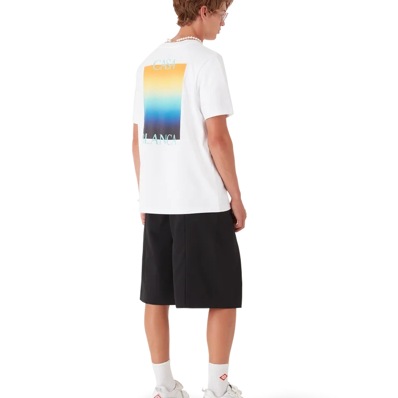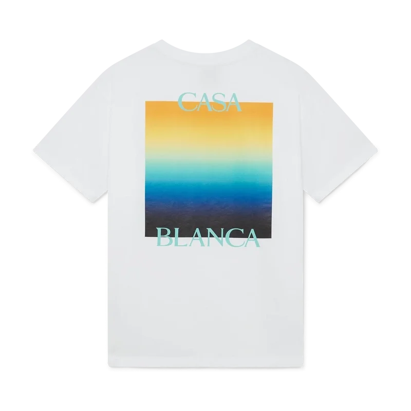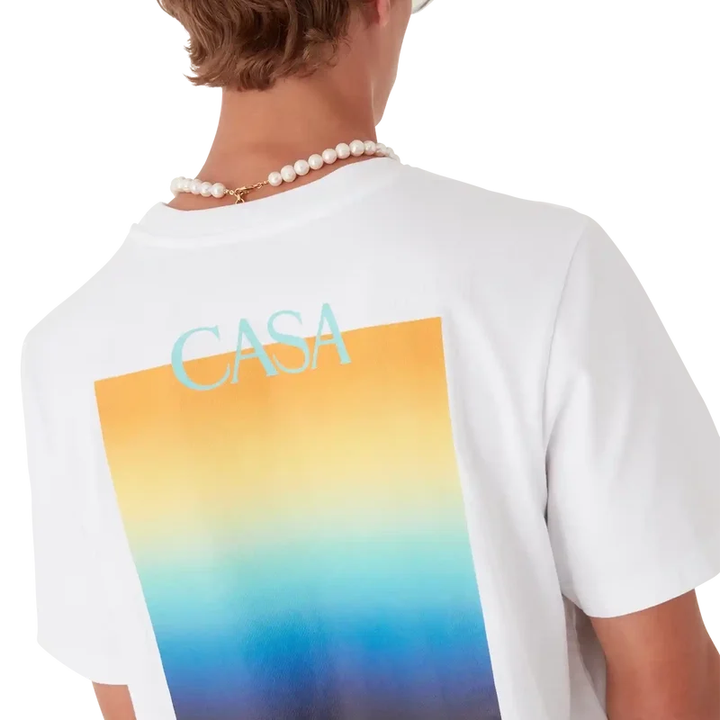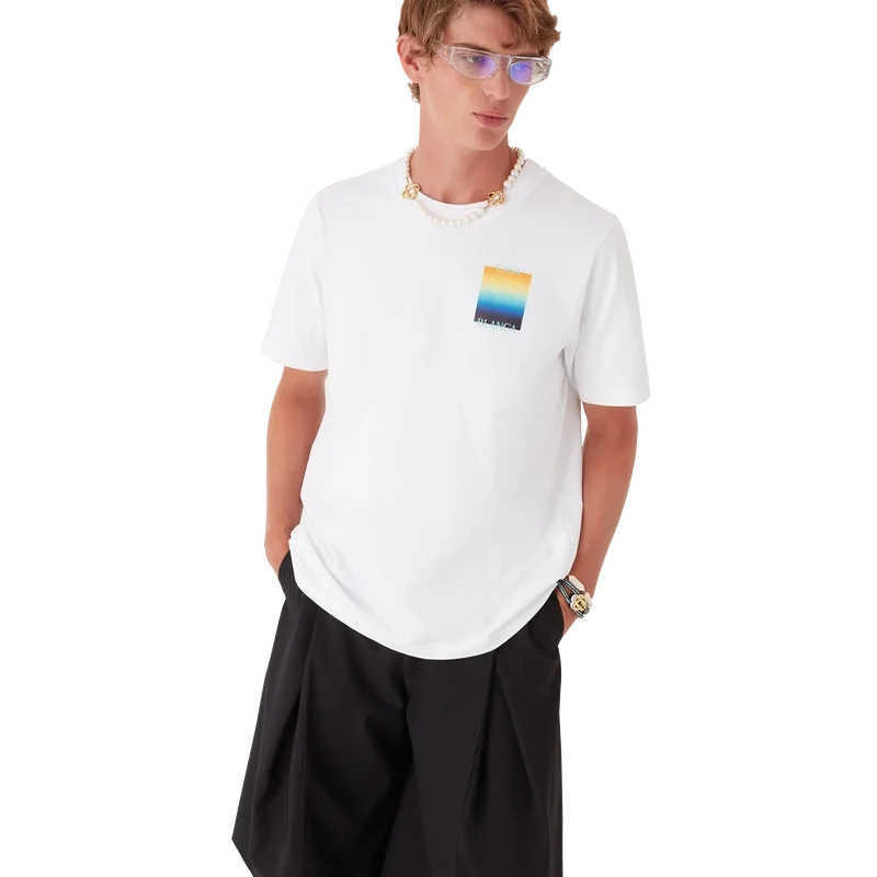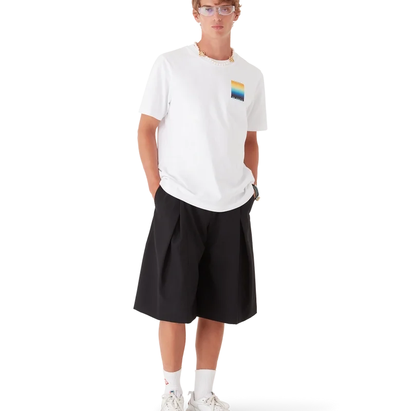 Het Gradient Square T-shirt is een bedrukt ontwerp met korte mouwen, voorzien van het gestapelde logo van het huis en het Gradient Square van dit seizoen – in onze traditie van het herinterpreteren van de krachtige natuurlijke kleurenpaletten van de natuur – Ons seizoensgebonden kleurverloop is geïnspireerd op de levendige en opvallende natuurlijke tinten van pijlgifkikkers; de gedurfde schakeringen van blauw naar geel duiden in de natuur op een waarschuwing en worden met dezelfde opvallende intentie gebruikt in onze prints. Vervaardigd van biologisch katoen en afgewerkt met een klassieke ronde hals.