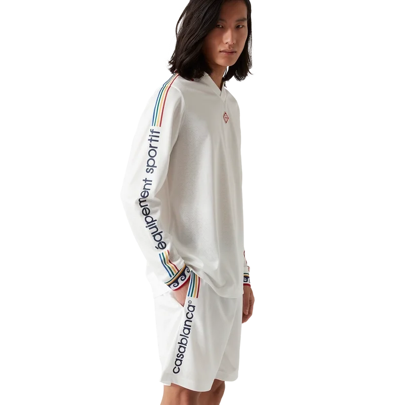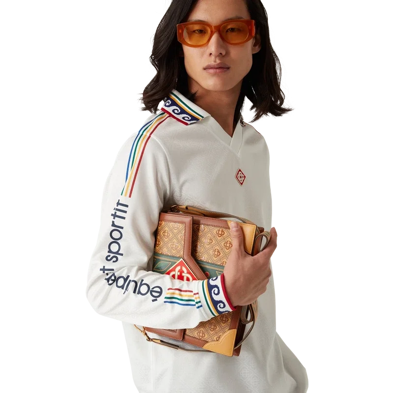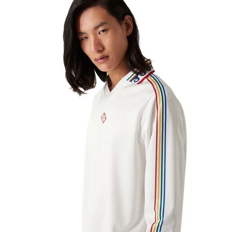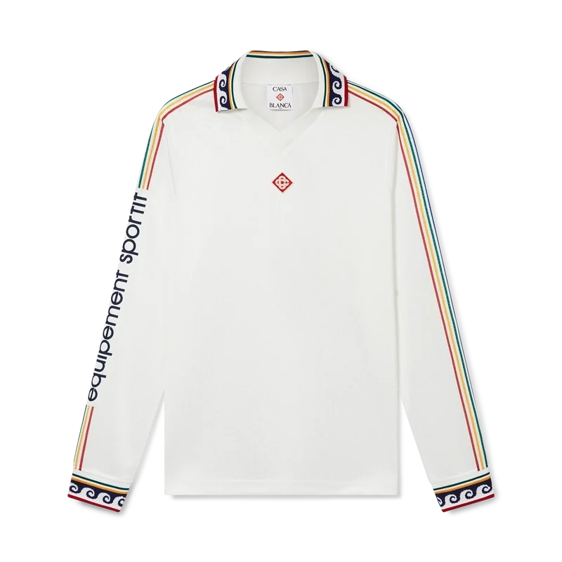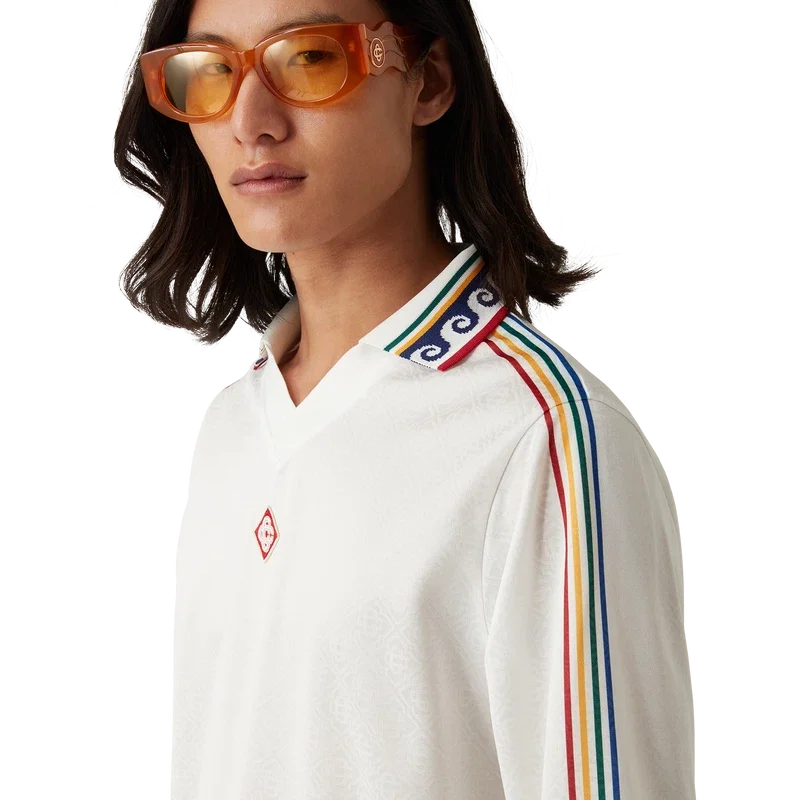 Het Jacquard Monogram voetbalshirt is een shirt met lange mouwen en een all-over print met het in elkaar grijpende Cc-monogram van het huis, vervaardigd van een Jacquard Monogram-stof. Afgewerkt met een geribde kraag en manchetten, Casablanca-logo op de mouwen en een kenmerkend Diamond Monogram-logo op de kraag.