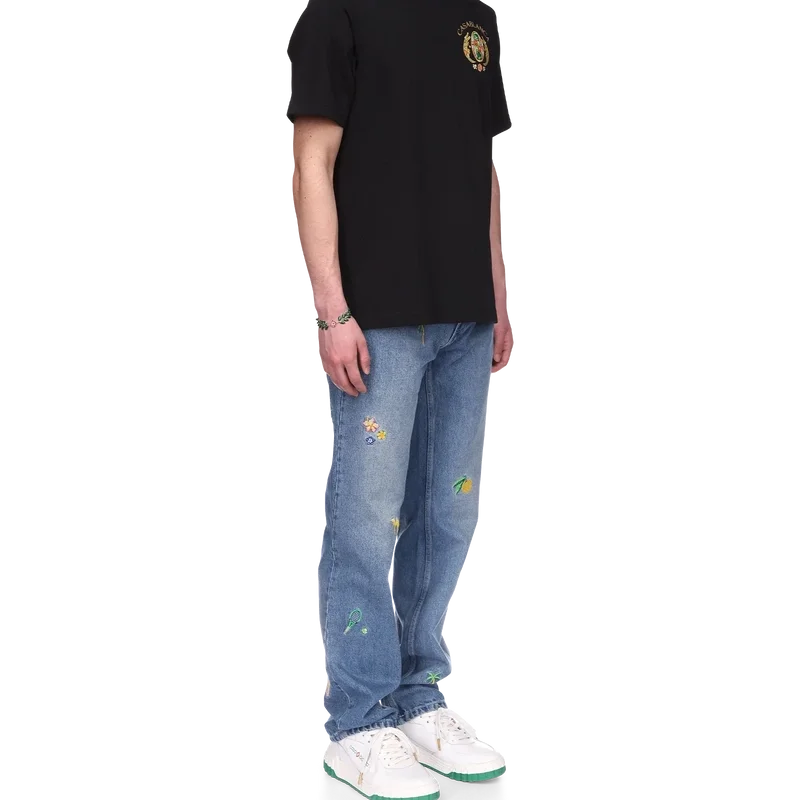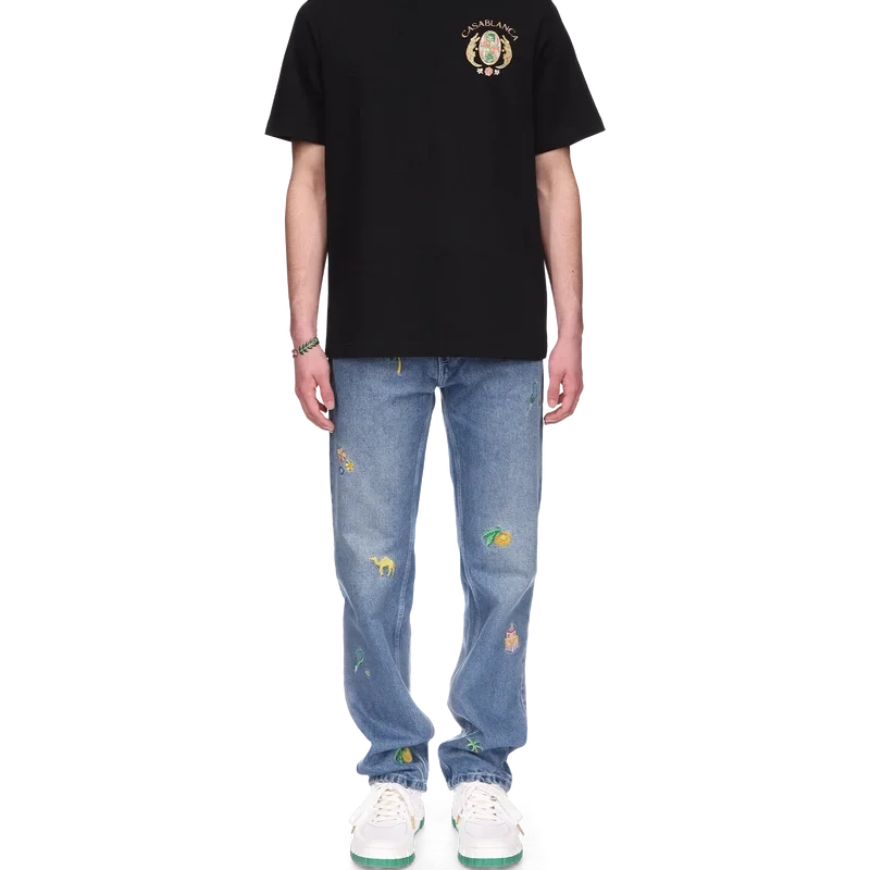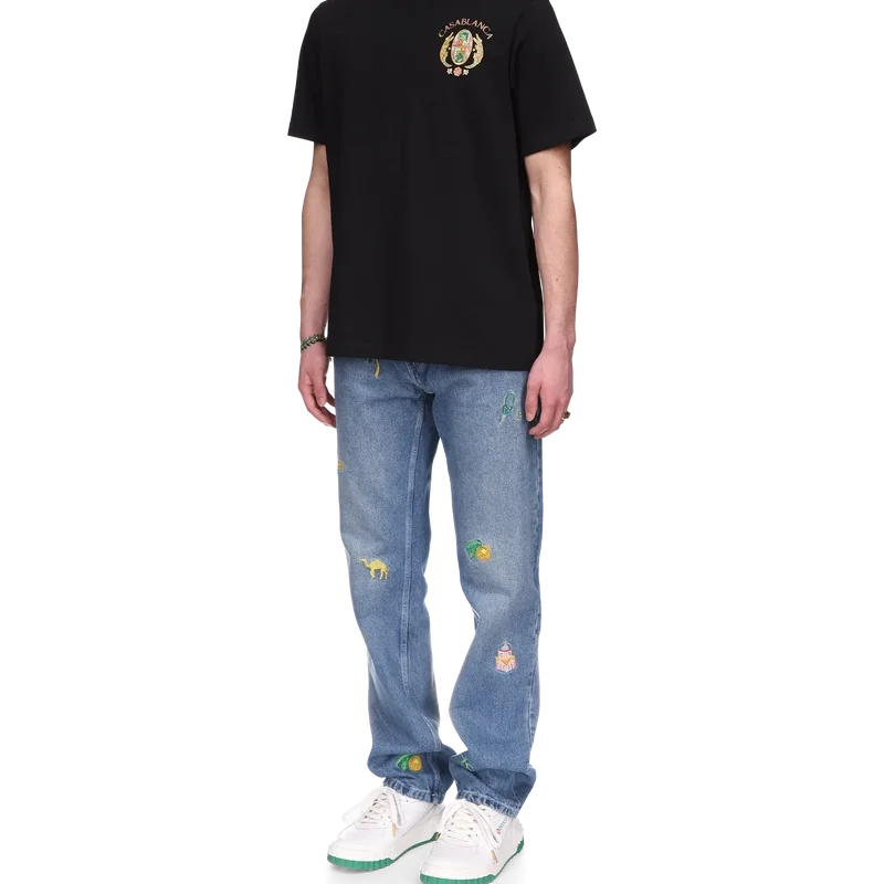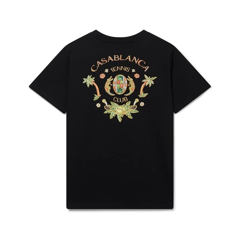 Het Joyaux D’afrique Tennis Club T-shirt is een bedrukt ontwerp met korte mouwen, gemaakt van biologisch katoen en voorzien van het kenmerkende artwork van het huis, dat voor dit seizoen opnieuw is geïnterpreteerd met een nieuwe kijk op onze sieradenstijl, gecombineerd met onze traditionele tennisclub-lay-out, waarbij de elementen prachtige sieraden zijn. Afgewerkt met een klassieke ronde hals.