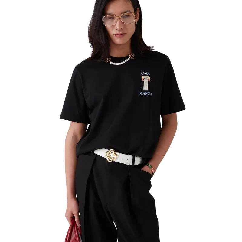 Het La Colonne T-shirt is een bedrukt ontwerp met korte mouwen, vervaardigd van biologisch katoen, met de seizoensgebonden kunst van het huis, geïnspireerd door de voortdurende studie van de klassieke schoonheid en de hedendaagse allure van het oude Griekenland. Afgewerkt met een klassieke ronde hals.