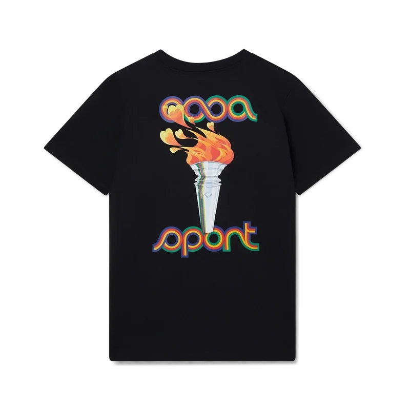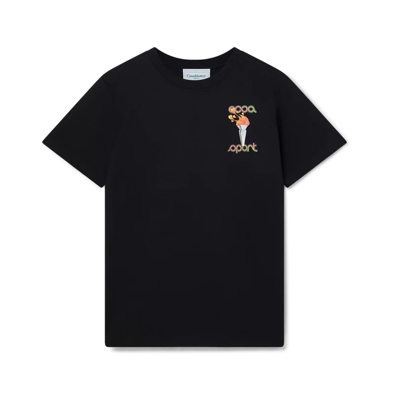 Het La Flamme Du Sport T-shirt van biologisch katoen met zeefdruk is voorzien van seizoensgebonden kunstwerken waarin de iconografie van het huis is verwerkt. Afgewerkt met een klassieke ronde hals, korte mouwen en een Casablanca Paris-merklabel, ontworpen voor een relaxte pasvorm.