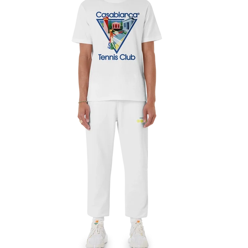 Het Le Joueuse T-shirt van biologisch katoen met zeefdruk heeft een seizoensgebonden variant op ons kenmerkende tennisclub-icoon. Afgewerkt met een klassieke ronde hals, korte mouwen en een Casablanca Paris-label, ontworpen voor een relaxte pasvorm.
