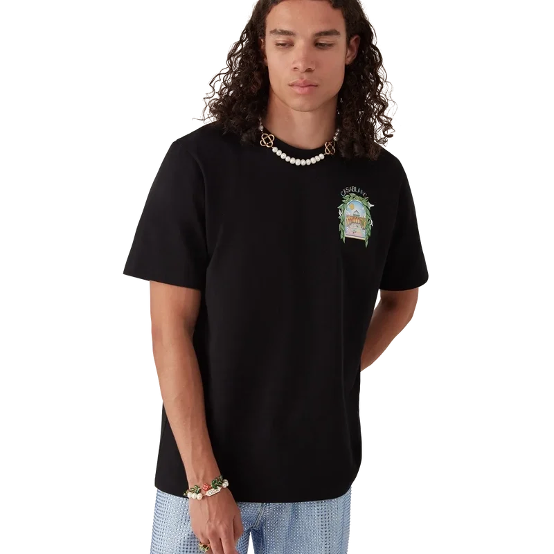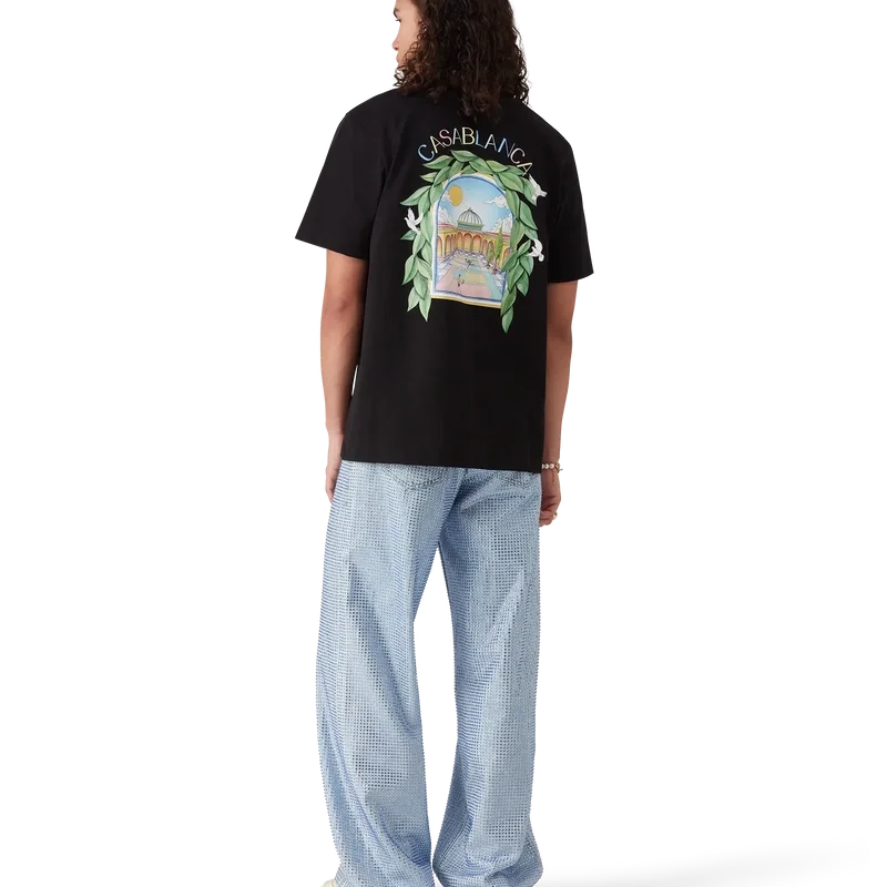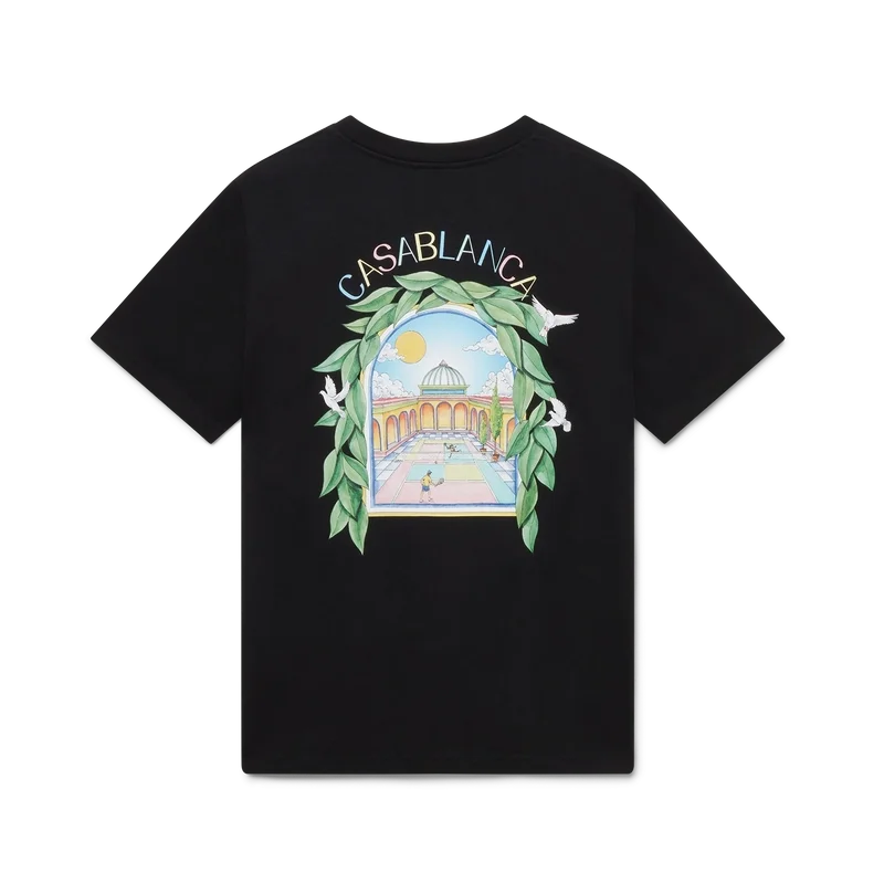 Het L’arche De Tennis T-shirt is een ontwerp met korte mouwen en een seizoensgebonden zeefdrukontwerp waarin de vrije stroom van de natuur samenkomt met de structuur van het door de mens gemaakte ontwerp – de boog, een abstract symbool van kracht. Afgewerkt met een klassieke ronde hals.
