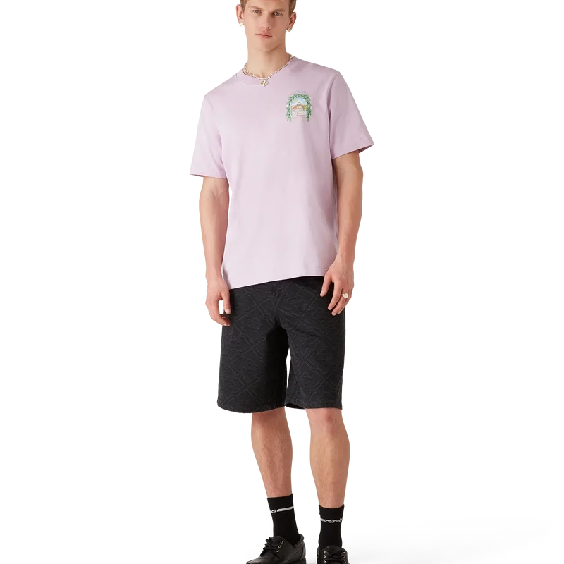 Het L’arche De Tennis T-shirt is een verfijnd ontwerp met korte mouwen en een print met de seizoensgebonden kunstwerken van het huis, met ontwerpelementen van de boog, de natuur, architectuur en tennis. Afgewerkt met een klassieke ronde hals en een relaxte pasvorm.<!–