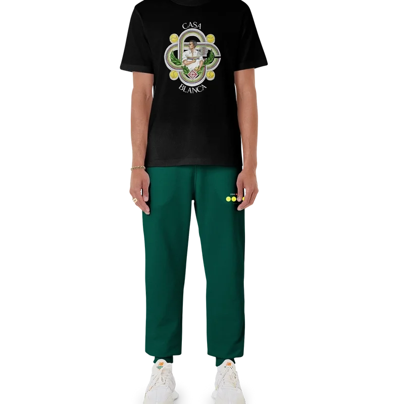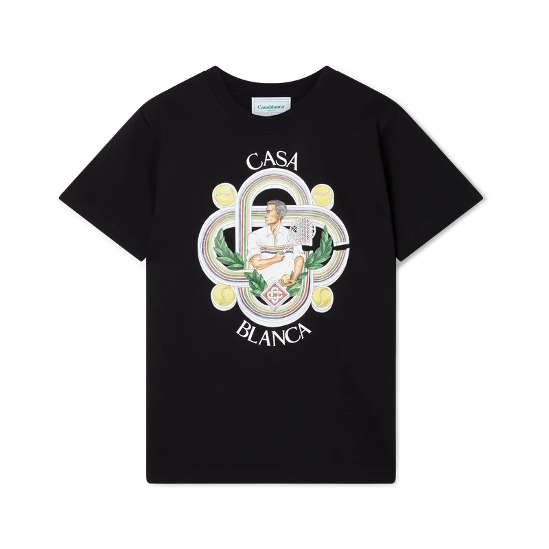 Het Le Joueur T-shirt van biologisch katoen met zeefdruk is voorzien van seizoensgebonden kunstwerken waarin de kenmerkende tennisiconografie van het huis is verwerkt. Afgewerkt met een klassieke ronde hals, korte mouwen en een Casablanca Paris-merklabel, ontworpen voor een relaxte pasvorm.