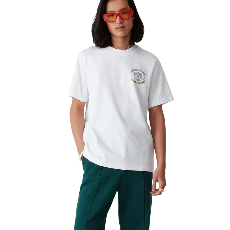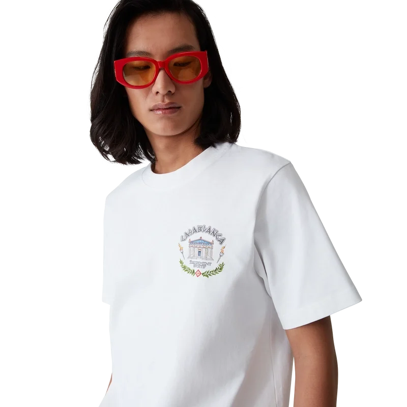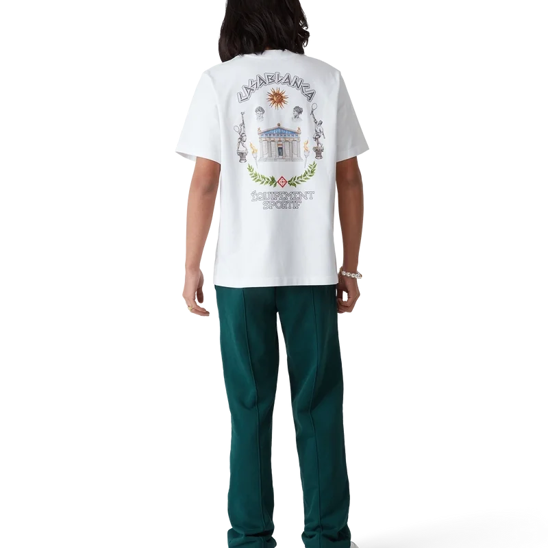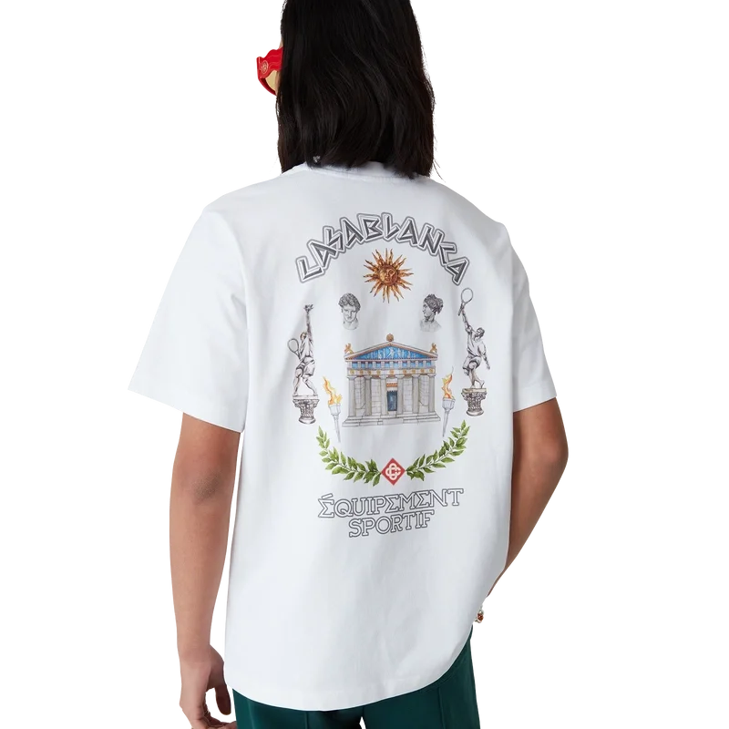 Het Le Temple Du Sport T-shirt is een bedrukt model met korte mouwen, vervaardigd uit biologisch katoen, met de seizoensgebonden illustraties van het merk, geïnspireerd door de voortdurende verkenning van de klassieke schoonheid en de hedendaagse allure van het oude Griekenland. Afgewerkt met een klassieke ronde hals.