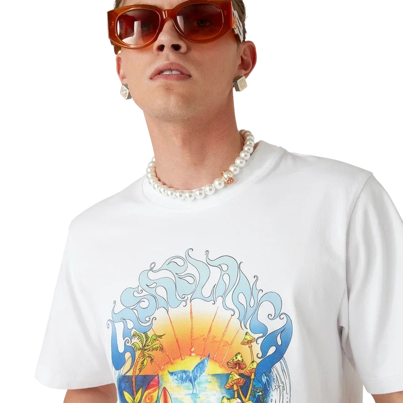 Het Surf Trip T-shirt is een bedrukt ontwerp met korte mouwen, gemaakt van biologisch katoen en voorzien van kenmerkende illustraties geïnspireerd op de vintage surfcultuur van Malibu, met typografie uit die tijd. Afgewerkt met een klassieke ronde hals.
