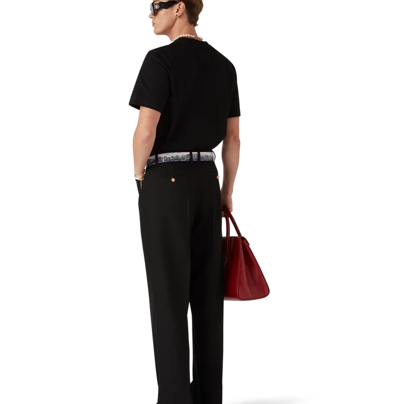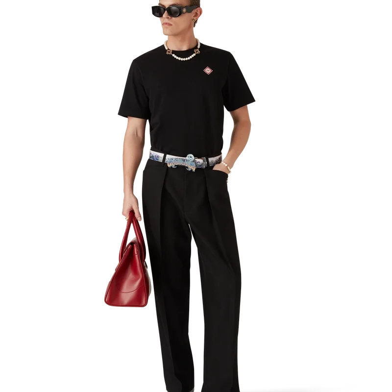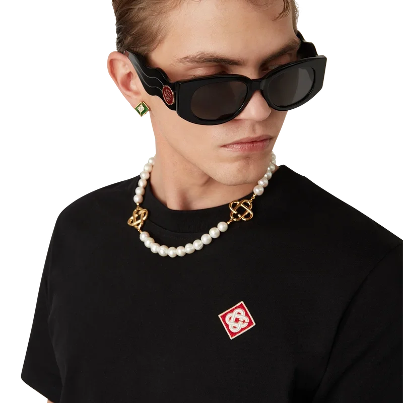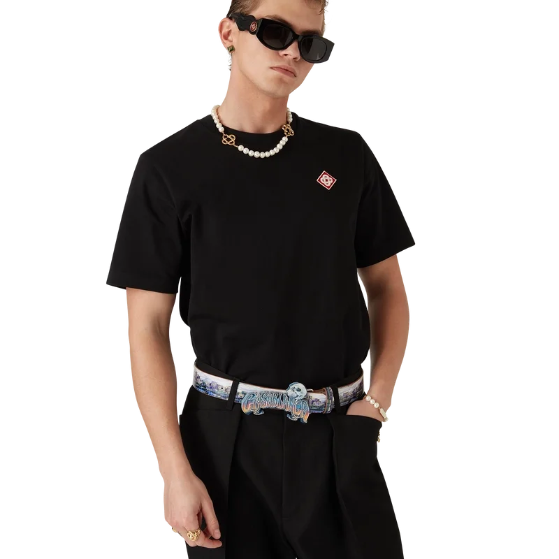 Het T-shirt met diamantlogo is een model met korte mouwen van biologisch katoen, voorzien van de kenmerkende diamantlogo-patch van het huis op de linkerborst. Afgewerkt met een klassieke ronde hals en een Casablanca-merklabel.