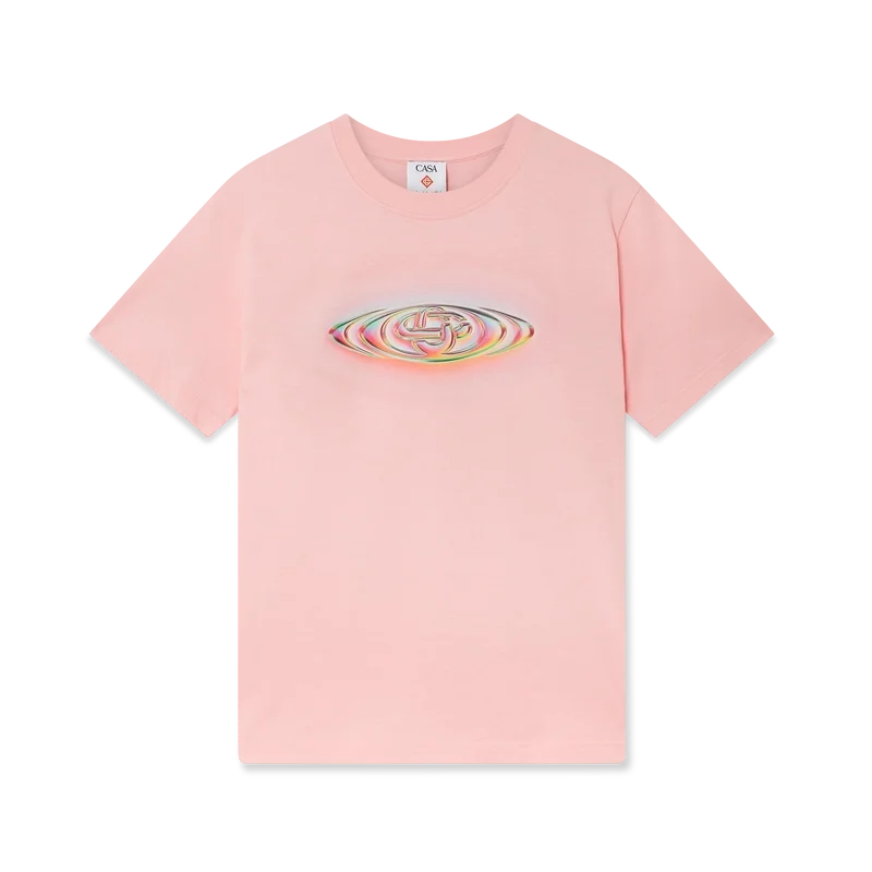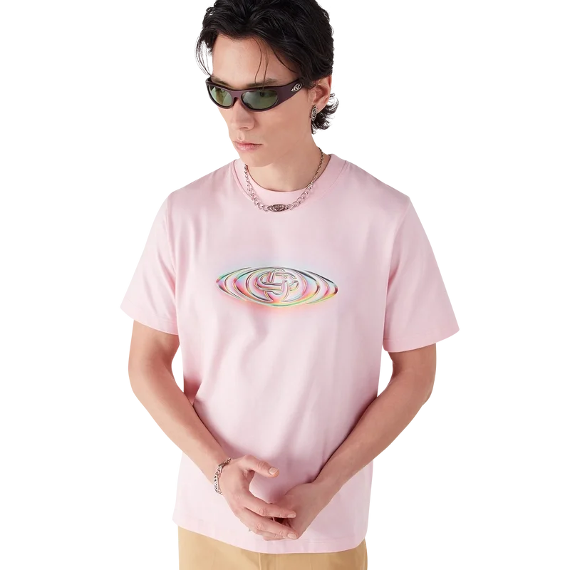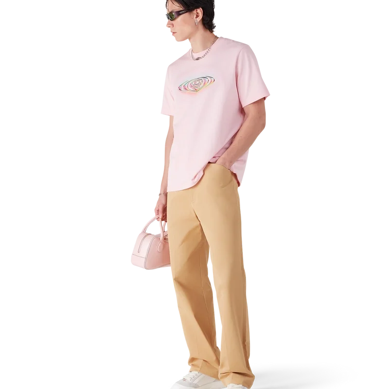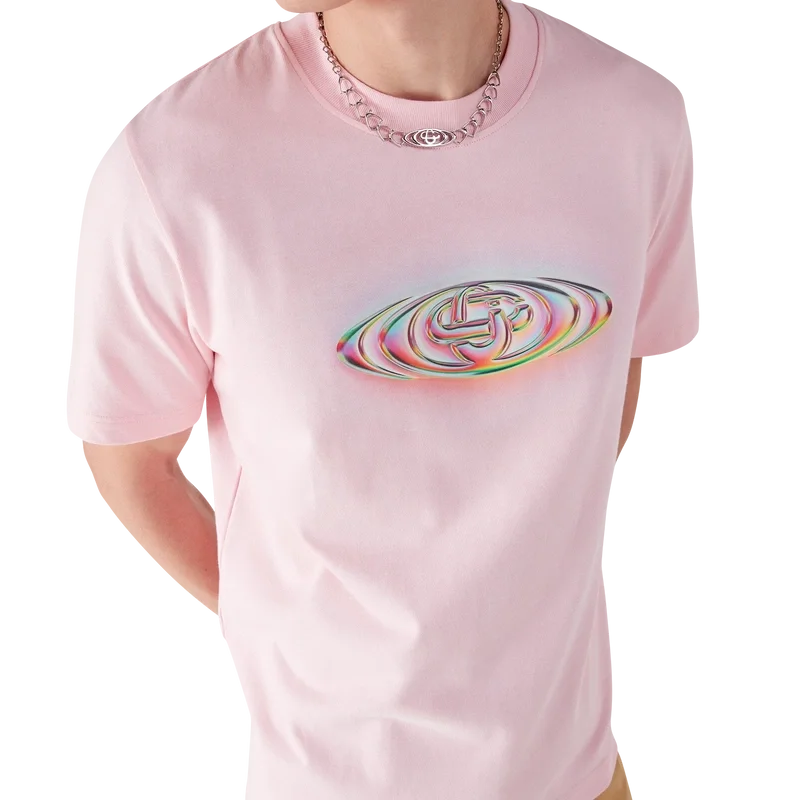 Het T-shirt met korte mouwen en glazen logo heeft een verfijnd ontwerp, ontwikkeld in samenwerking met Martin Naumann, met opvallende kunstwerken die spelen met kleurverlopen en textuureffecten. Het ontwerp experimenteert met het huislogo om een harmonieuze balans te bereiken tussen halftoonafbeeldingen en een op glas geïnspireerde esthetiek. Afgewerkt met een ronde hals en korte mouwen in een relaxte pasvorm.