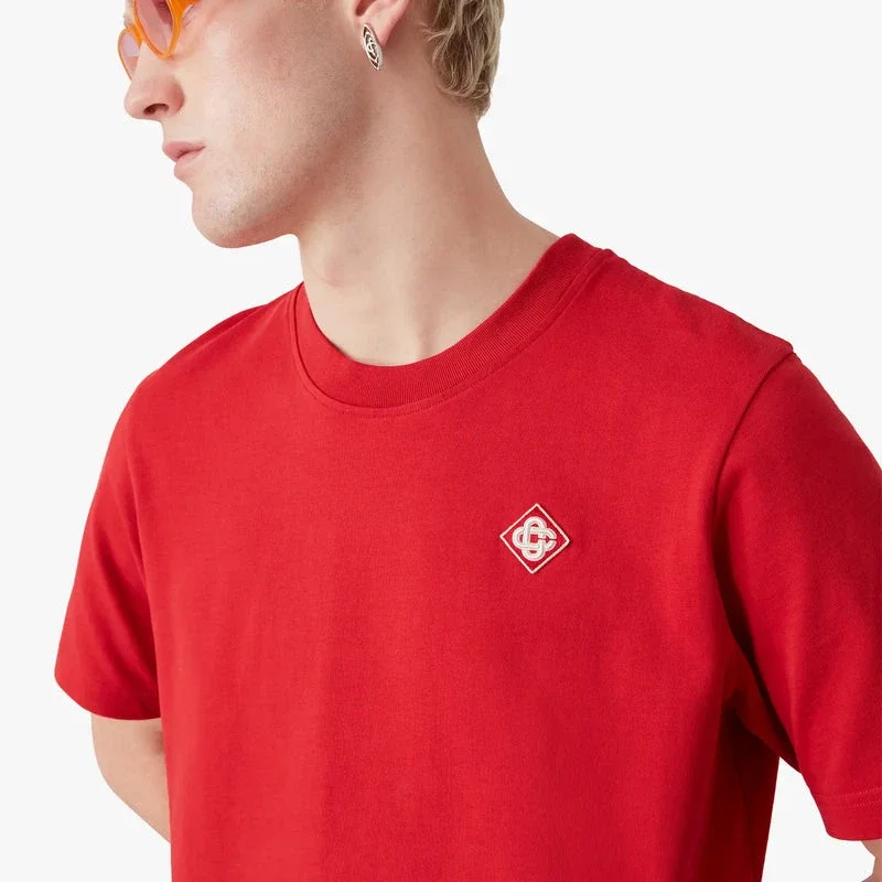 Het T-shirt met korte mouwen en rood diamantlogo heeft een verfijnd ontwerp met het diamantlogo van het huis. Afgewerkt met een klassieke ronde hals en een relaxte pasvorm.