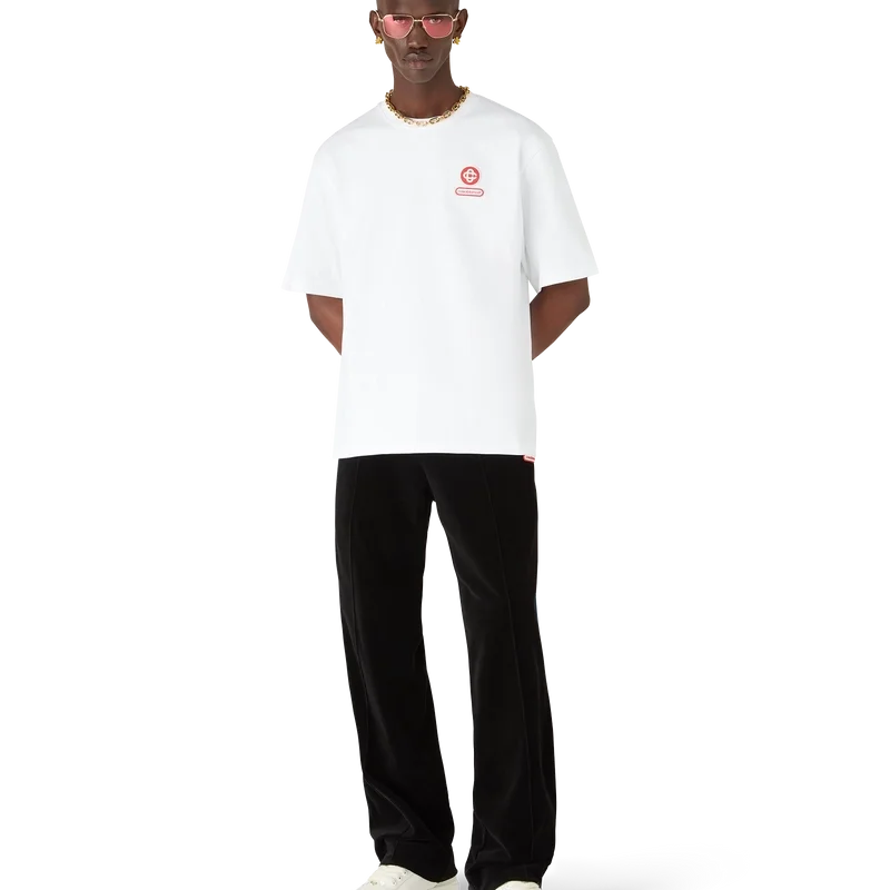 Het T-shirt met korte mouwen en logopatch is gemaakt van biologisch katoen en voorzien van het kenmerkende in elkaar grijpende CC-logo van het huis. Afgewerkt met een Japanse Casablanca-logopatch op de rug en een klassieke ronde hals.
