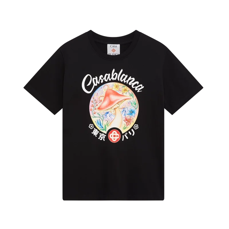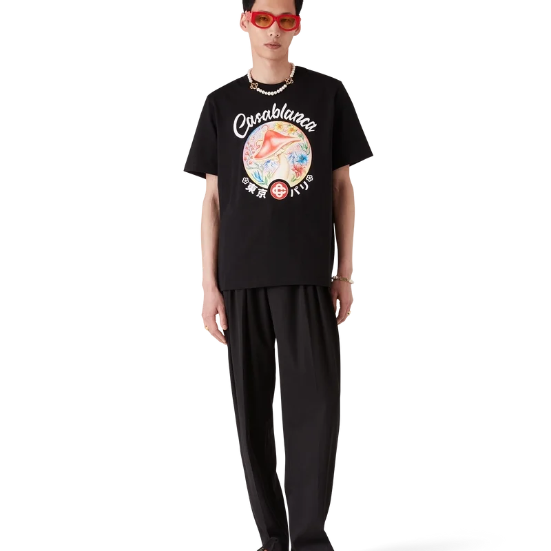 Het T-shirt met paddestoelembleem is een ontwerp met korte mouwen, gemaakt van biologisch katoen en voorzien van het kenmerkende kunstwerk van het huis dat een van de ontwerpelementen van het huis weergeeft: de paddestoel, opnieuw geïnterpreteerd voor dit seizoen. Afgewerkt met een klassieke ronde hals.