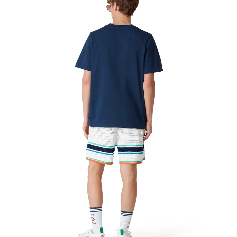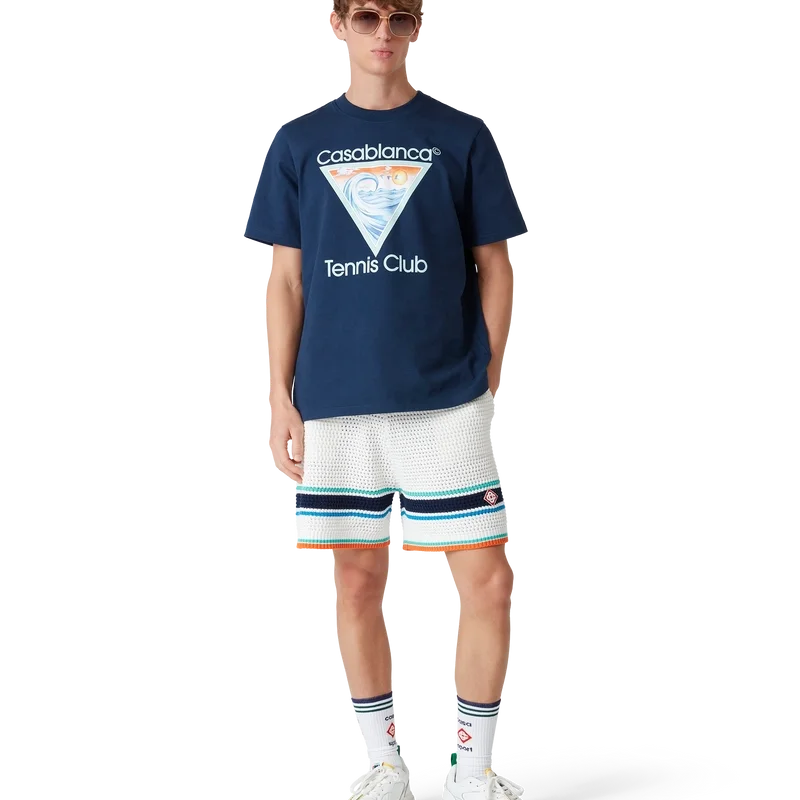 Het Tennis Club Icon T-shirt is een bedrukt ontwerp met korte mouwen, gemaakt van bedrukt biologisch katoen. Het heeft een seizoensgebonden variant op onze kenmerkende Tennis Club Icon-illustratie met ontwerpelementen uit de natuur, architectuur en tennis. Afgewerkt met een klassieke ronde hals.