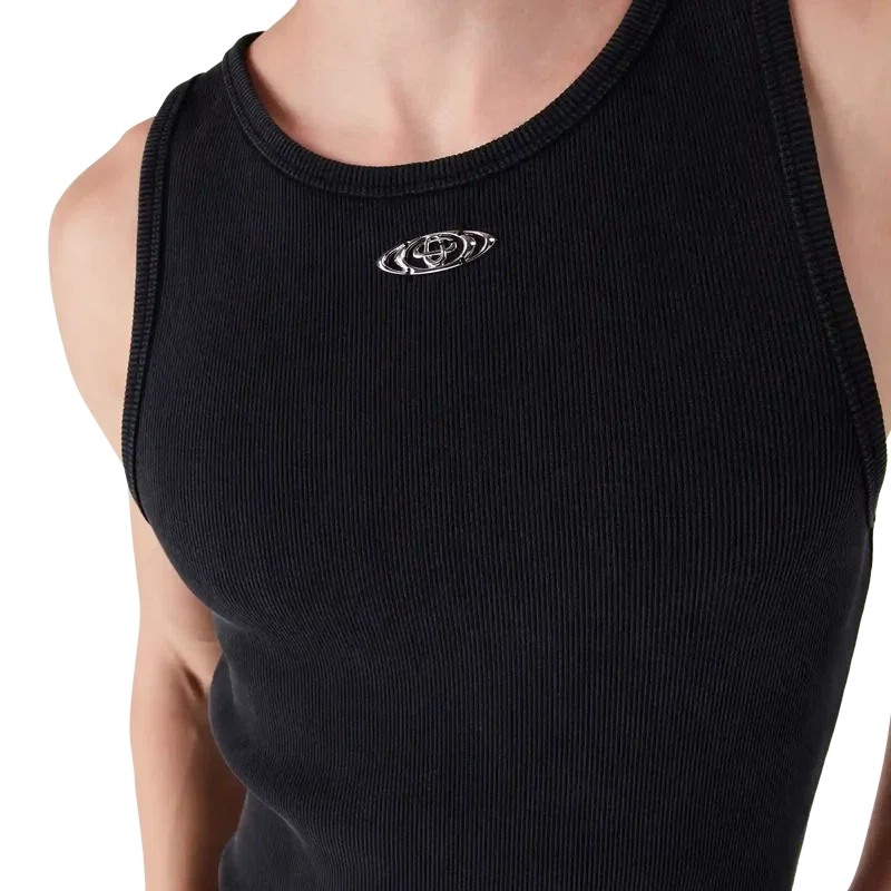 De vervaagde geribde tanktop is een mouwloos ontwerp met het Warped-logo van het huis in het midden. Afgewerkt met een ronde hals en geribde hals- en armsgaten.